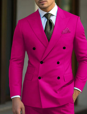 Green Men's Tailored Fit Double Breasted Six-buttons 2 Pieces Solid Colored Wedding Suits