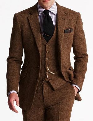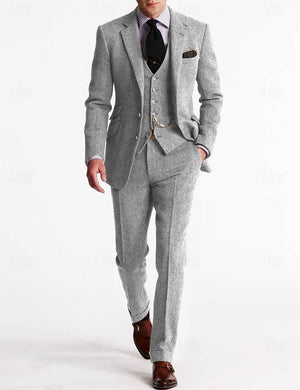 Men's Tweed Herringbone Suits 3 Piece Vintage Retro Plus Size Solid Colored Tailored Fit Single Breasted Two-buttons Fall/Winter