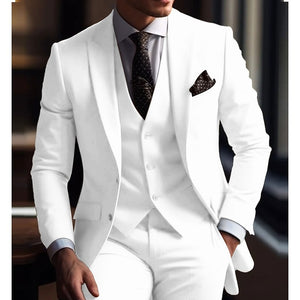 Men's Wedding Suits Peak White Ivory Solid Colored Prom Suits Slim Fit 3 Piece Single Breasted Two-buttons