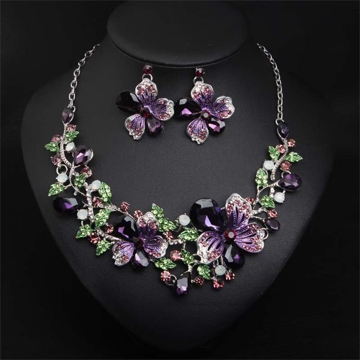 Women's Color-Plated Crystal Glass Exaggerated Flower Jewelry Set