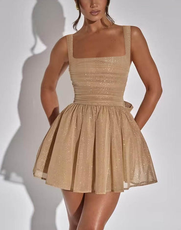 Shiny A-Line/Princess V-Neck Sleeveless Evening Dresses with Belt & Ruffles