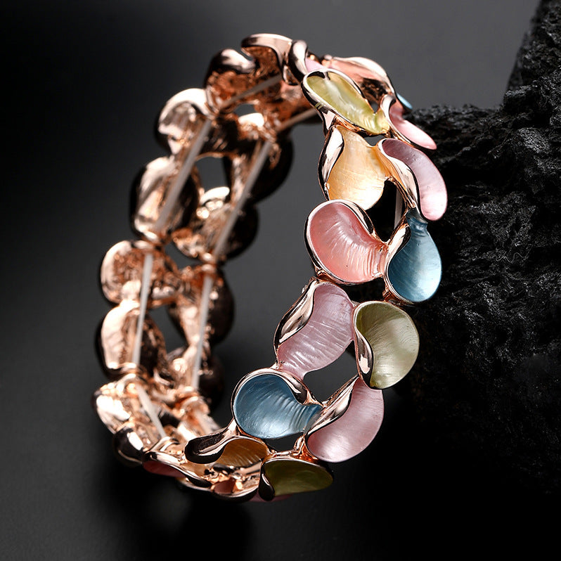 Stylish Sweet Double Rows Colorful Art Petal Stretch Bracelet