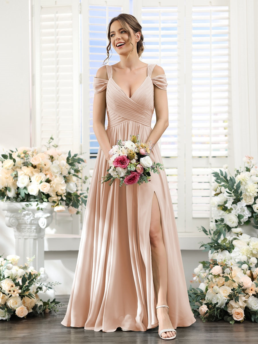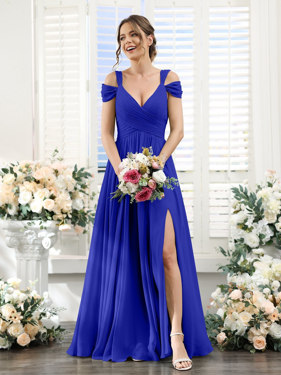 A-Line/Princess Off-the-Shoulder Floor-length Prom Dresses