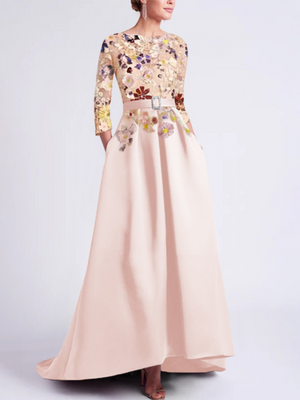 A-Line/Princess 3/4 Sleeves Printed Leaves Mother of the Bride Dresses with Split Side & Belt & Ruffles