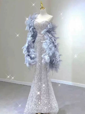 Sheath/Column Sequins V-Neck Floor-length Evening Dresses With Split Side