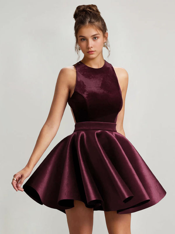#N352111 A Line/Princess Christmas Party Dresses Velvet Cocktail Short/Mini Spaghetti Straps Sleeveless Homecoming Pleated