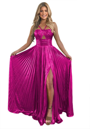 A-Line/Princess Prom Dress V-Neck Sleeveless Floor-Length Evening Dresses with Split Side