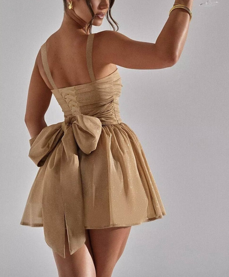 #N350310 A Line Glitter Party Dress Square Neck Tulle Mini Prom Cocktail Gowns with Bow Ruffles