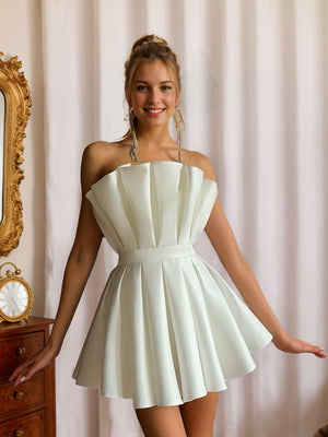 A-Line/Princess Strapless Sleeveless Pleated Short/Mini Backless Homecoming Dresses with Lace-up