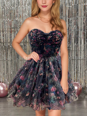 A-Line/Princess Strapless Sleeveless Short/Mini Party Dance Cocktail Homecoming Dress