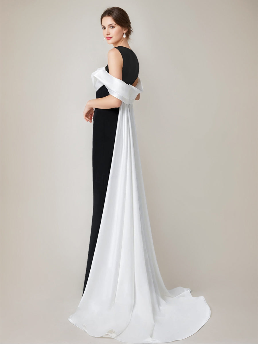 #N141575 Sheath/Column Scoop Sleeveless Floor-Length Elegant Wedding Guest Dress with Watteau Train