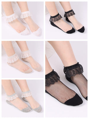 5 PCS Women's Daily Holiday Lace Spandex Nylon Toe Socks