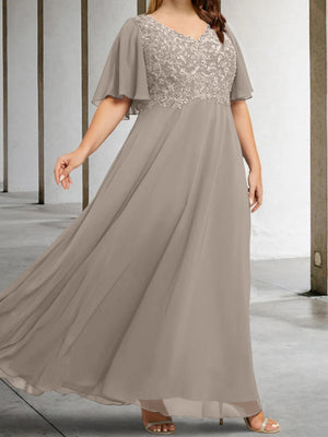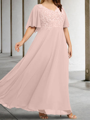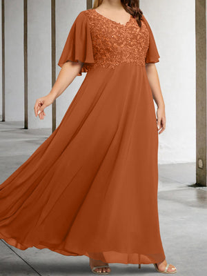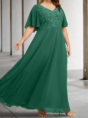 A-Line/Princess V-Neck Half Sleeves Floor-Length Mother of the Bride Dresses with Applique
