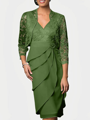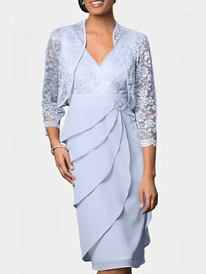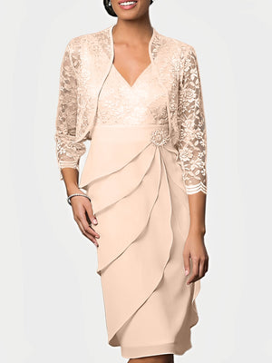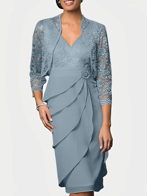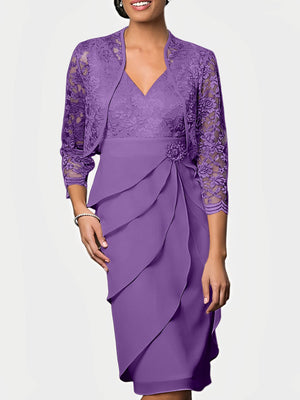Sheath/Column V-Neck Knee-Length Mother of the Bride Dresses