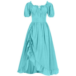 A-Line/Princess Short Sleeves Asymmetrical Retro Vintage Medieval Renaissance Dress