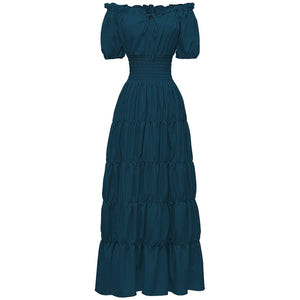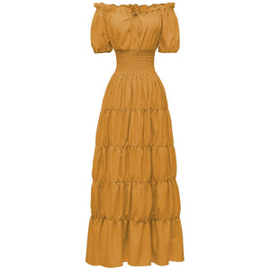 A-Line/Princess Off-the-Shoulder Short Sleeves Floor-Length Medieval Renaissance Cocktail Dress