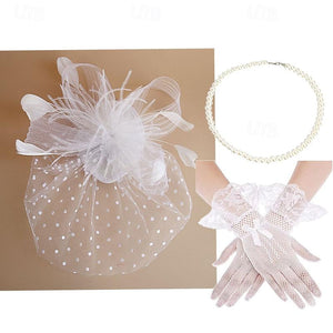 Vintage 1950s Tiara Gloves Necklace Accessories Set
