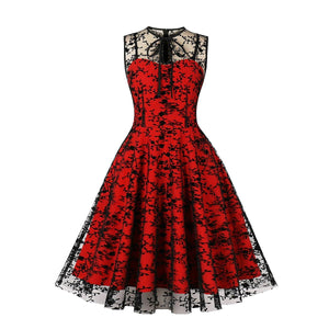 A-Line/Princess Round-Neck Sleeveless Tea-Length Halloween Performance Costumes Dress with Lace