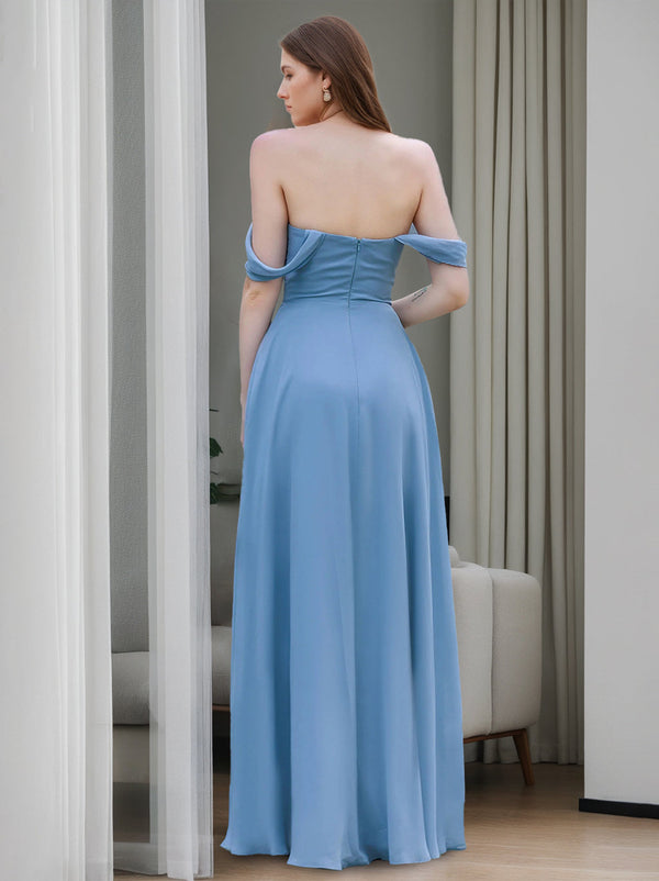 #N5412134 A-Line/Princess Strapless Neck Sleeveless Floor-Length Bridesmaid Dresses with Split Side