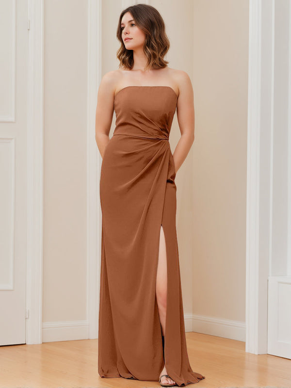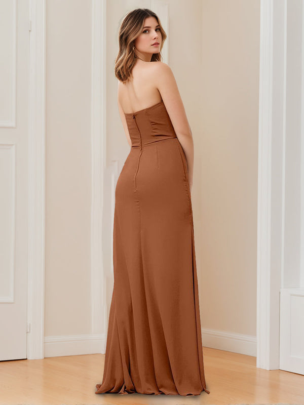 #N5411828 A Line/Princess Strapless Neck Sleeveless Floor-Length Bridesmaid Dresses with Split Side & Ruffles