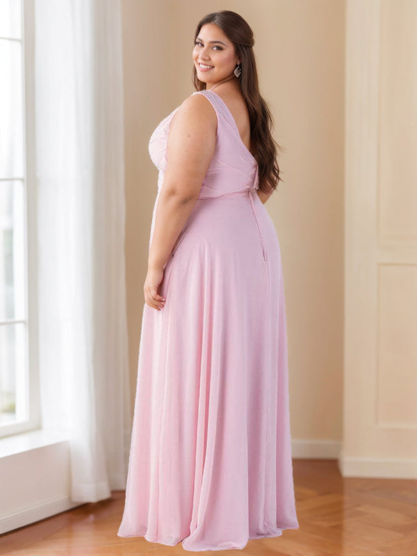 #N5411837 A Line/Princess V-Neck Sleeveless Floor-Length Bridesmaid Dresses with Ruffles