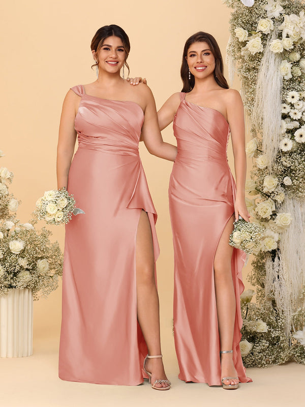 #N99122125 Sheath/Column One-Shoulder Sleeveless Split Side Bridesmaid Dresses with Ruffles