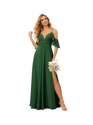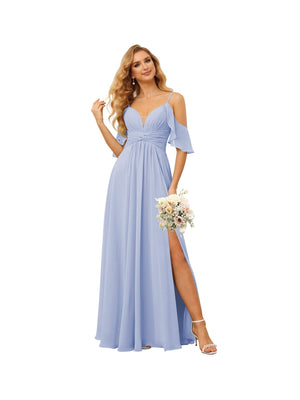 A-Line/Princess V-Neck Floor-length Long Bridesmaid Dresses