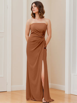 A Line/Princess Strapless Neck Sleeveless Floor-Length Bridesmaid Dresses with Split Side & Ruffles