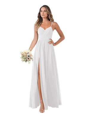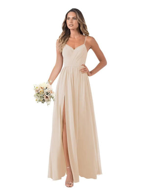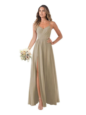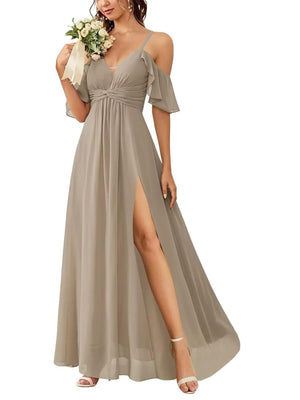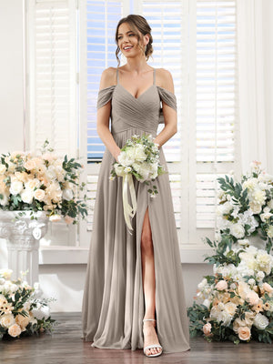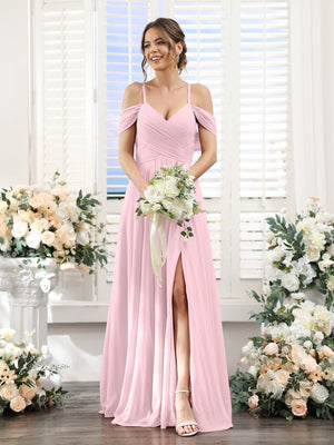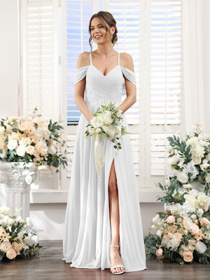 A-Line/Princess V-Neck Spaghetti Straps Floor-Length Chiffon Bridesmaid Dresses with Split Side