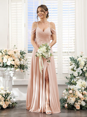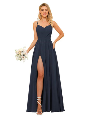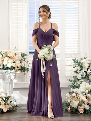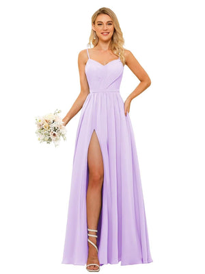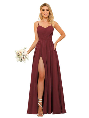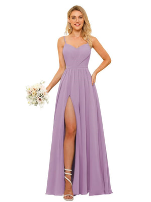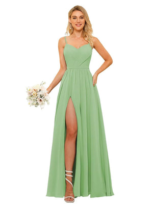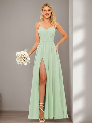 A-Line/Princess Spaghetti Straps Floor-Length Chiffon Bridesmaid Dresses with Split Side & Ruched