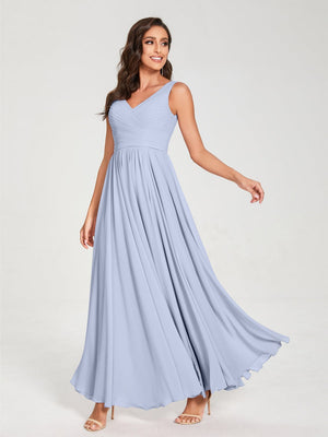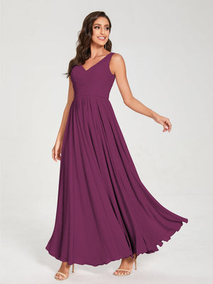 A-Line/Princess Chiffon V-Neck Sleeveless Floor-Length Bridemaid Dresses With Pleats