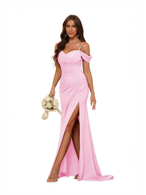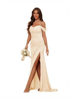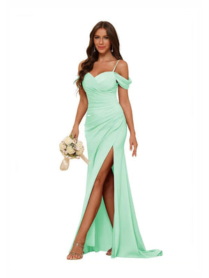Sheath/Column Off-the-Shoulder Long Bridesmaid Dresses with Split Side