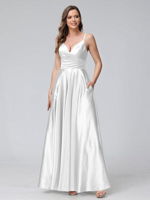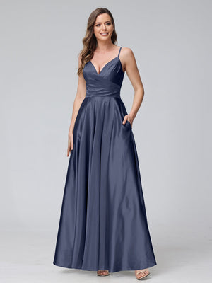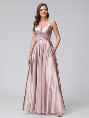A Line/Princess Satin V-Neck Sleeveless Floor-Length Bridesmaid Dresses