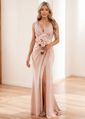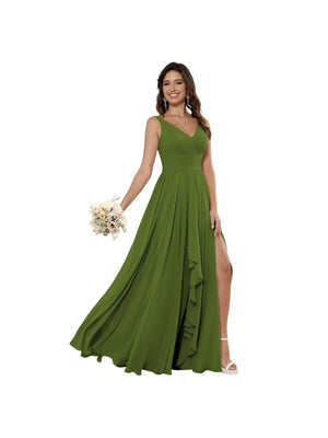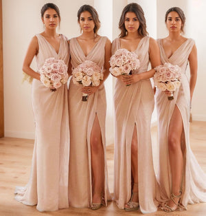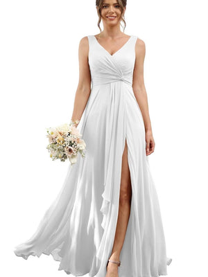 A Line/Princess V Neck Sleeveless Floor-Length Bridesmaid Dresses with Split