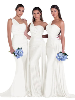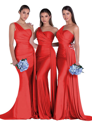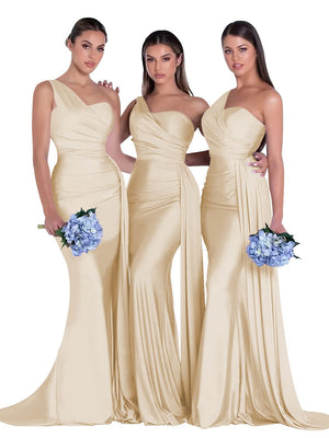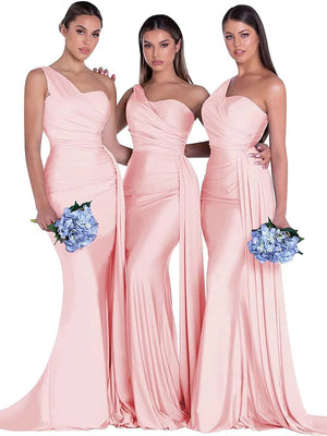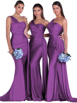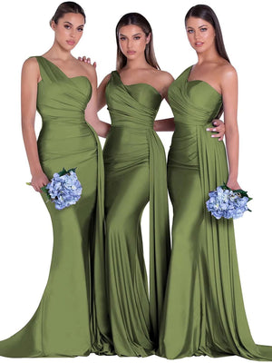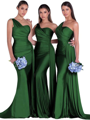 Mermaid/Trumpet Satin One-Shoulder Sleeveless Floor-Length Bridesmaid Dresses