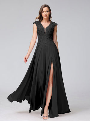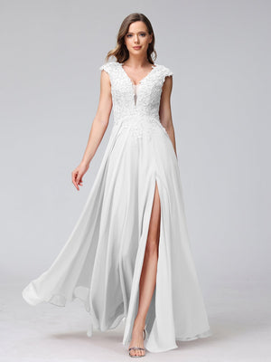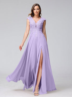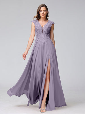 A-Line/Princess V-Neck Sleeveless Chiffon LongBridemaid Dresses With Applique Split Side