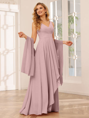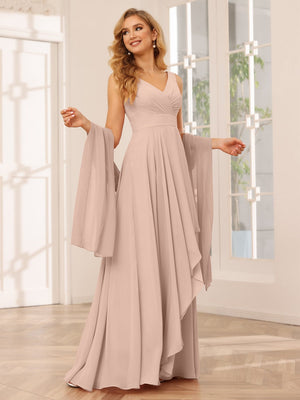 A Line/Princess Chiffon V Neck Sleeveless Floor-Length Bridesmaid Dresses