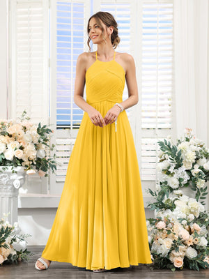 A-Line/Princess Halter Sleeveless Floor-Length Chiffon Bridesmaid Dress