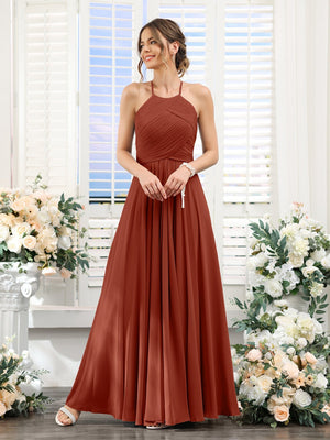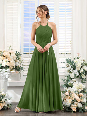 A-Line/Princess Halter Sleeveless Floor-Length Chiffon Bridesmaid Dresses with Ruched