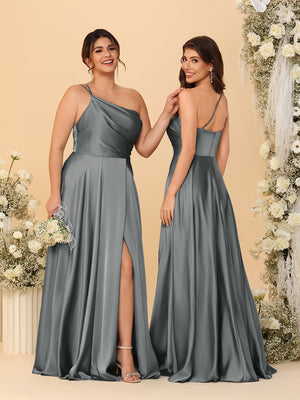 A Line/Princess Satin One-shoulder Sleeveless Floor-Length Bridesmaid Dresses
