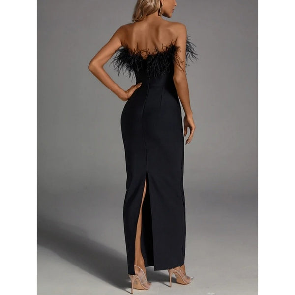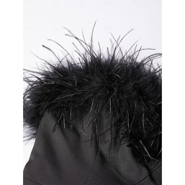 #N355710 Mermaid Evening Party Dress Off The Shoulder Sleeveless Ankle Length Feather Black Dress Formal Black Tie