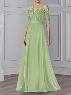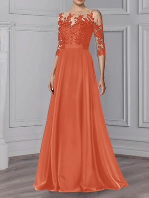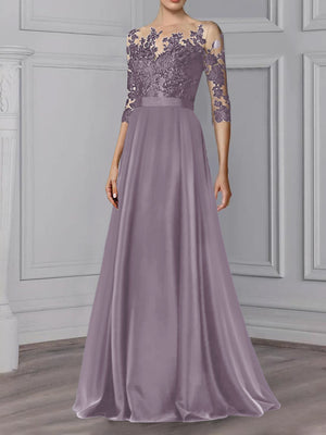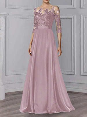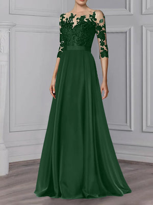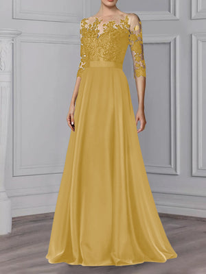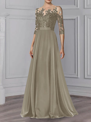 A-Line/Princess Jewel Neck 3/4 Length Sleeves Floor-Length Mother of the Bride Dresses