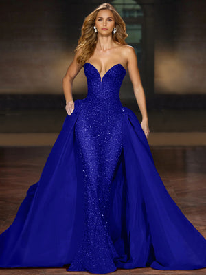 Sparkly Ball Gown Sequin Evening Dress Sleeveless Floor-Length Strapless With Cape