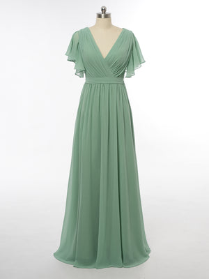A-Line/Princess V-Neck Short Sleeves Bridesmaid Dresses with Ruffles