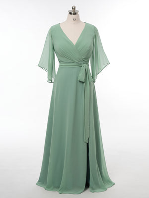 A-Line/Princess V-Neck 3/4 Sleeves Bridesmaid Dresses with Belt