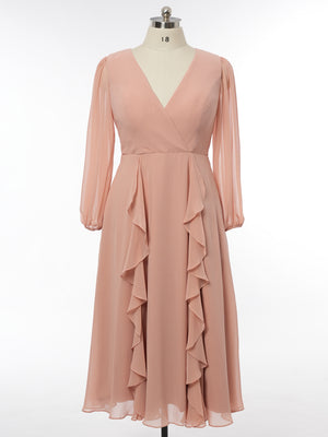 A-Line/Princess V-Neck Long Sleeves Bridesmaid Dresses with Ruffles
