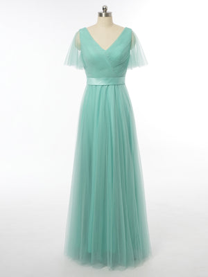 A-Line/Princess V-Neck Short Sleeves Bridesmaid Dresses with Belt