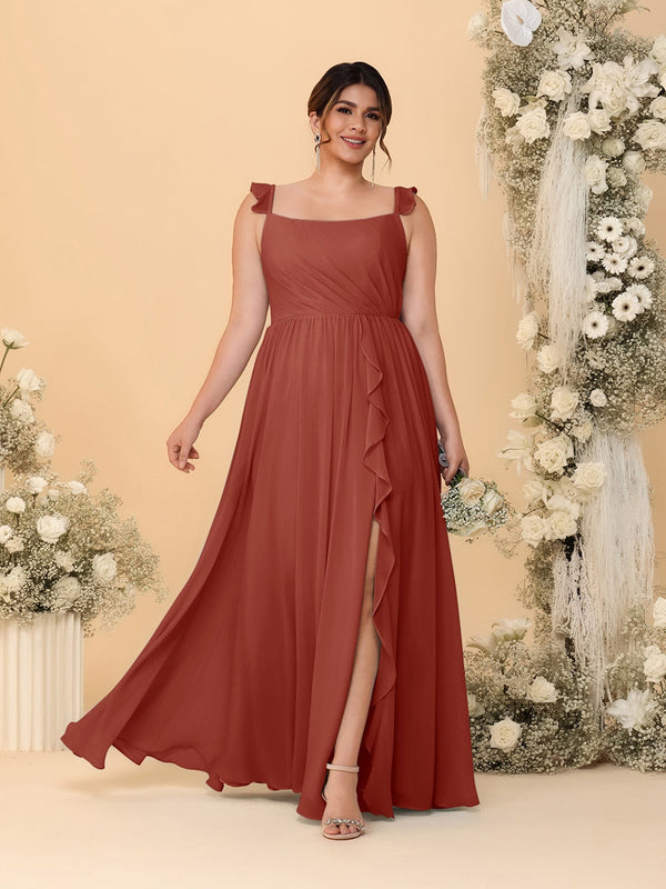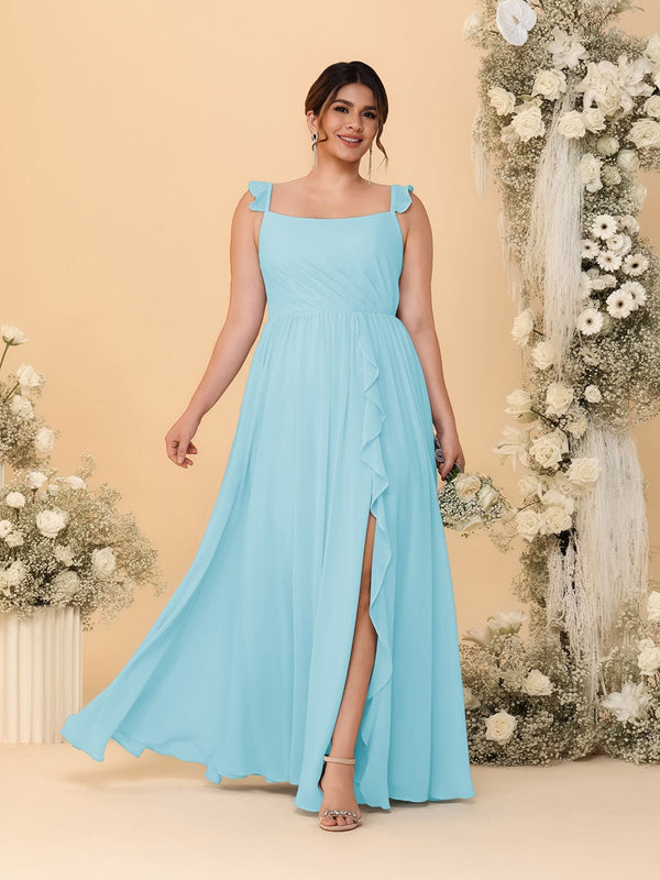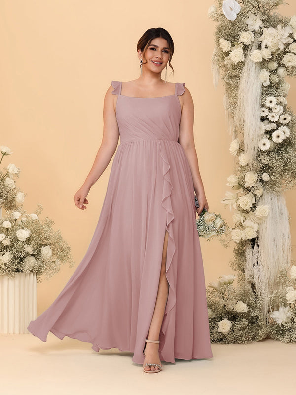 #N99122118P A-Line/Princess Square Neck Sleeveless Plus Size Bridesmaid Dresses With Side Slit & Ruffles