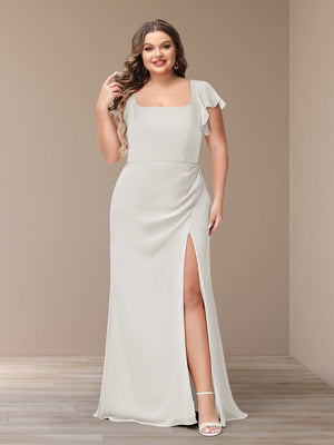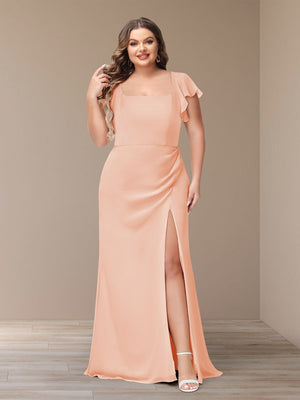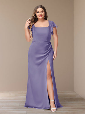 Sheath/Column Short Sleeves Chiffon Plus Size Bridesmaid Dresses with Split Side