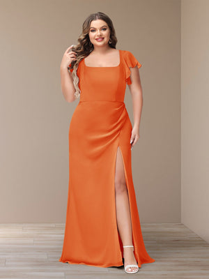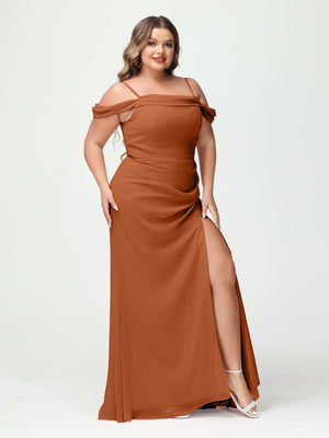 Sheath/Column Spaghetti Straps Split Side Plus Size Bridesmaid Dresses